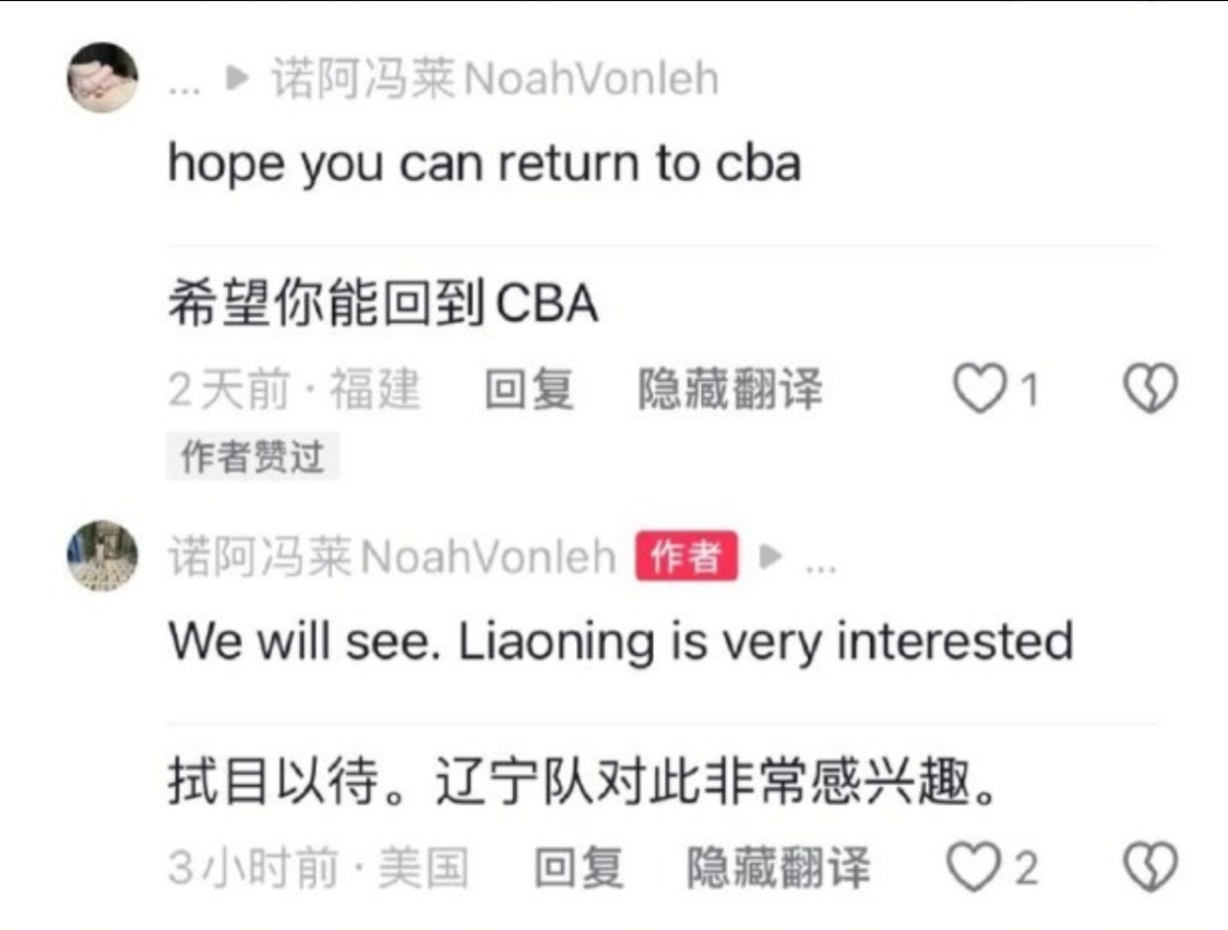 虽然休赛期辽宁男篮已经敲定了老熟人莫兰德的回归,不过考虑到球队在内线的攻坚能力比较羸弱(玄冥二老进攻能力大不如前,付豪状态并不稳定),所以也在继续考虑引进新大外。近期,据上海旧将冯莱在个人社交媒体透露,辽宁男篮对自己很感兴趣。